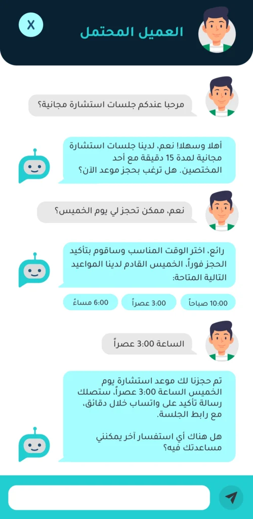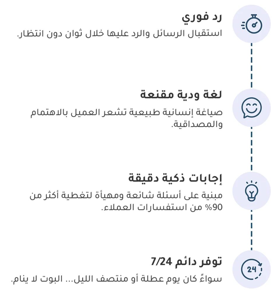 ميزة الرد بلغتين أو أكثر تمكّن الروبوت من التواصل مع جمهور أوسع، مما يزيد فرص التفاعل ويضمن وصول رسائلك بطريقة طبيعية واحترافية لجميع العملاء.